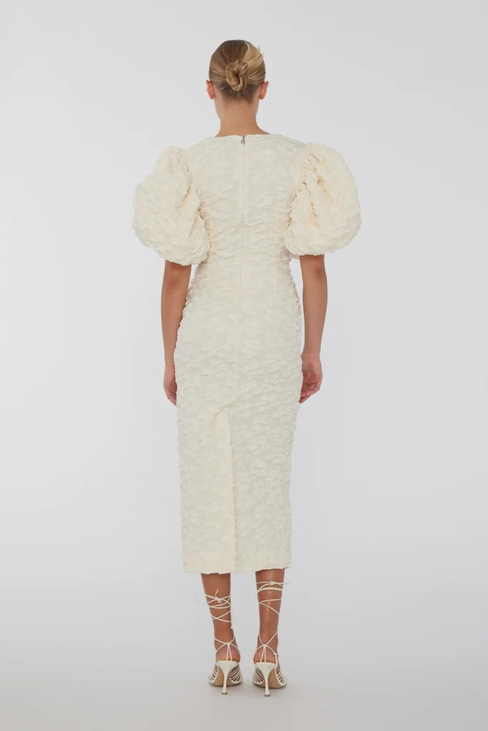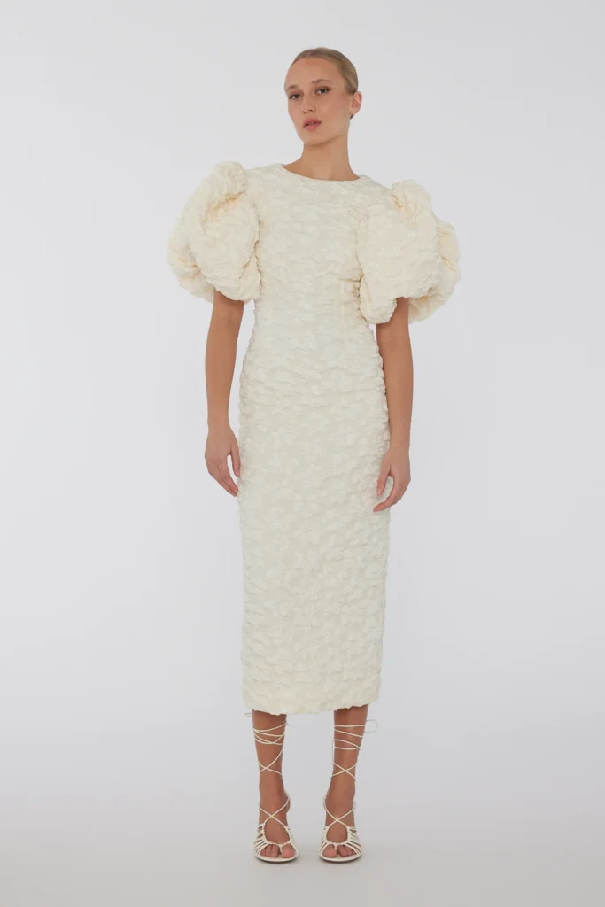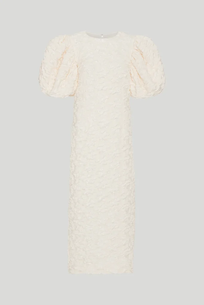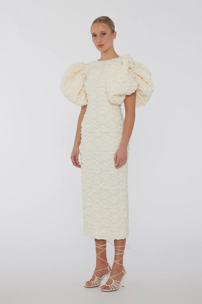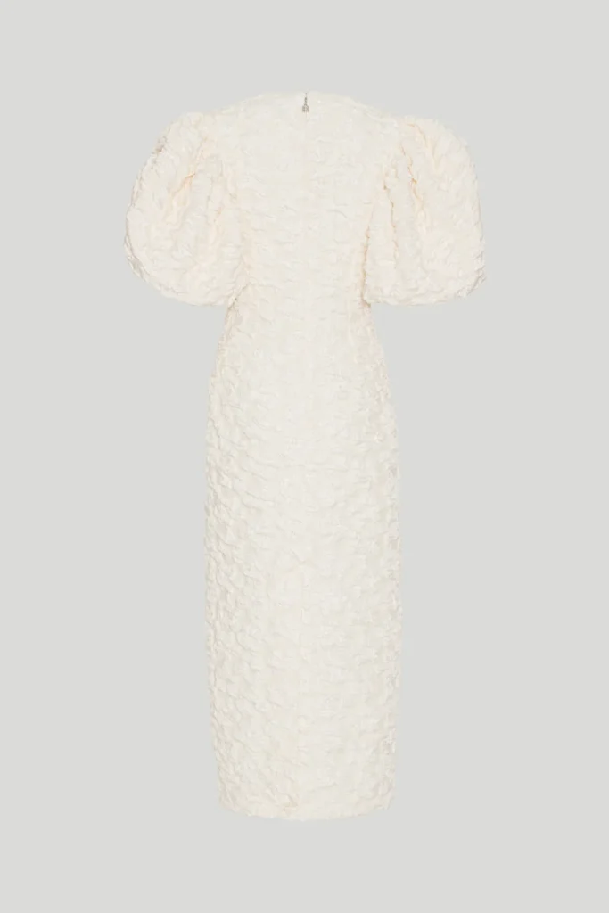 Zapraszamy do wypożyczenia naszej wyjątkowej sukienki ślubnej - "Rotate Wedding". Nasz model "Jacquard Midi Puffy Dress Egret" to idealny wybór dla każdej przyszłej panny młodej ale i nie tylko. Ta długoszczelna sukienka o obcisłej sylwetce i bufiastych rękawach zapewni Ci niezapomniany wygląd w dniu Twojego ślubu. Jej zaletą jest również zapięcie z tyłu za pomocą niewidocznego zamka błyskawicznego, które dodaje sukience elegancji. Wykonana z wysokiej jakości tkaniny dżakardowej, sukienka prezentuje się niezwykle szykownie i wytwornie. Skorzystaj z naszej oferty wypożyczalni sukienek i poczuj się wyjątkowo w tym wyjątkowym dniu!